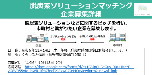 市町村と繋がるピッチイベント「脱炭素ソリューションマッチング」への登壇企業を募集します!