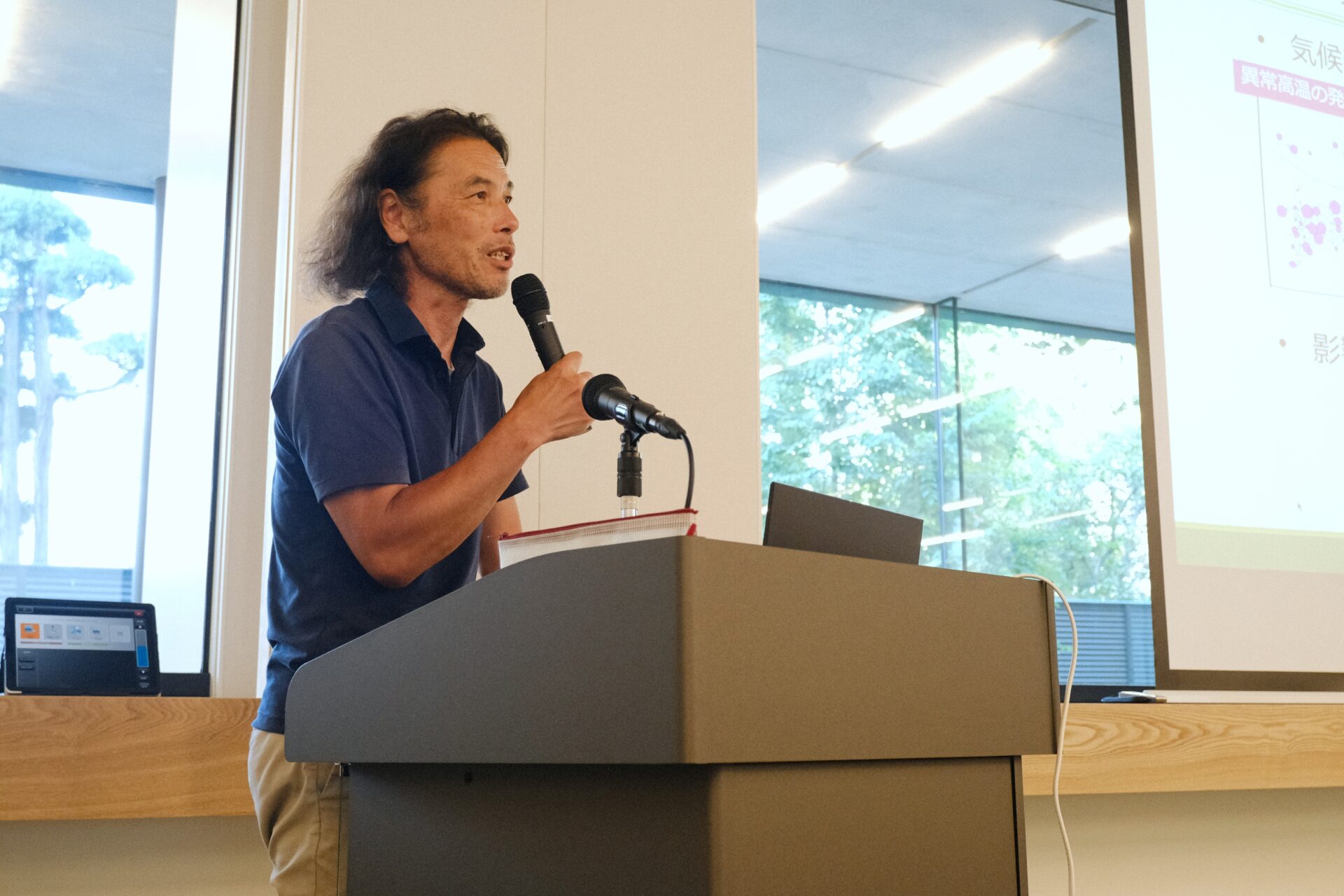 続いて登壇したのは、長野県環境保全研究所の浜田崇氏。「松本市域における気候変動とその影響」と題して情報提供を行いました。