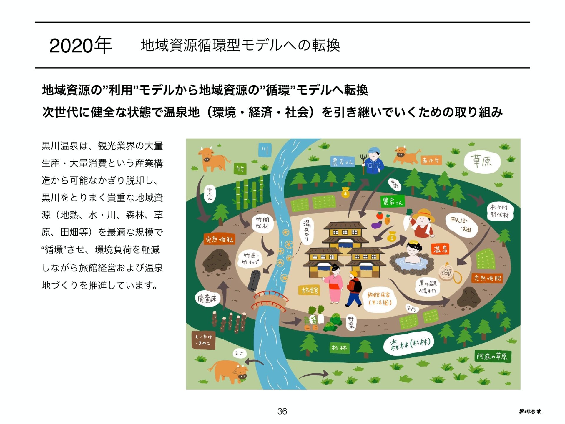 北山氏からは、「黒川温泉 2030 年ビジョンの取り組みについて」と題し、