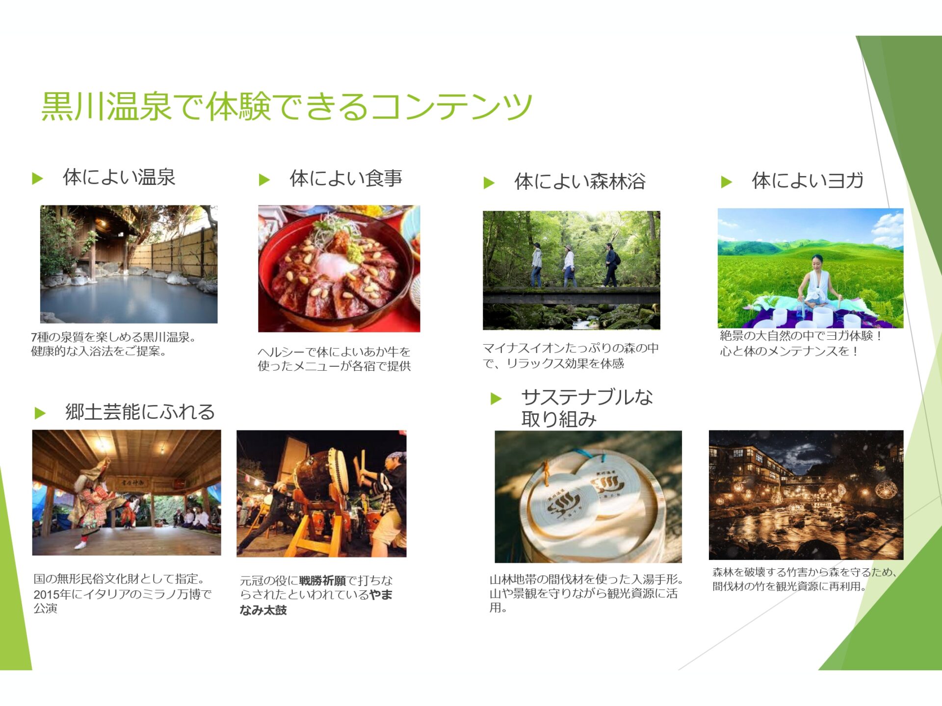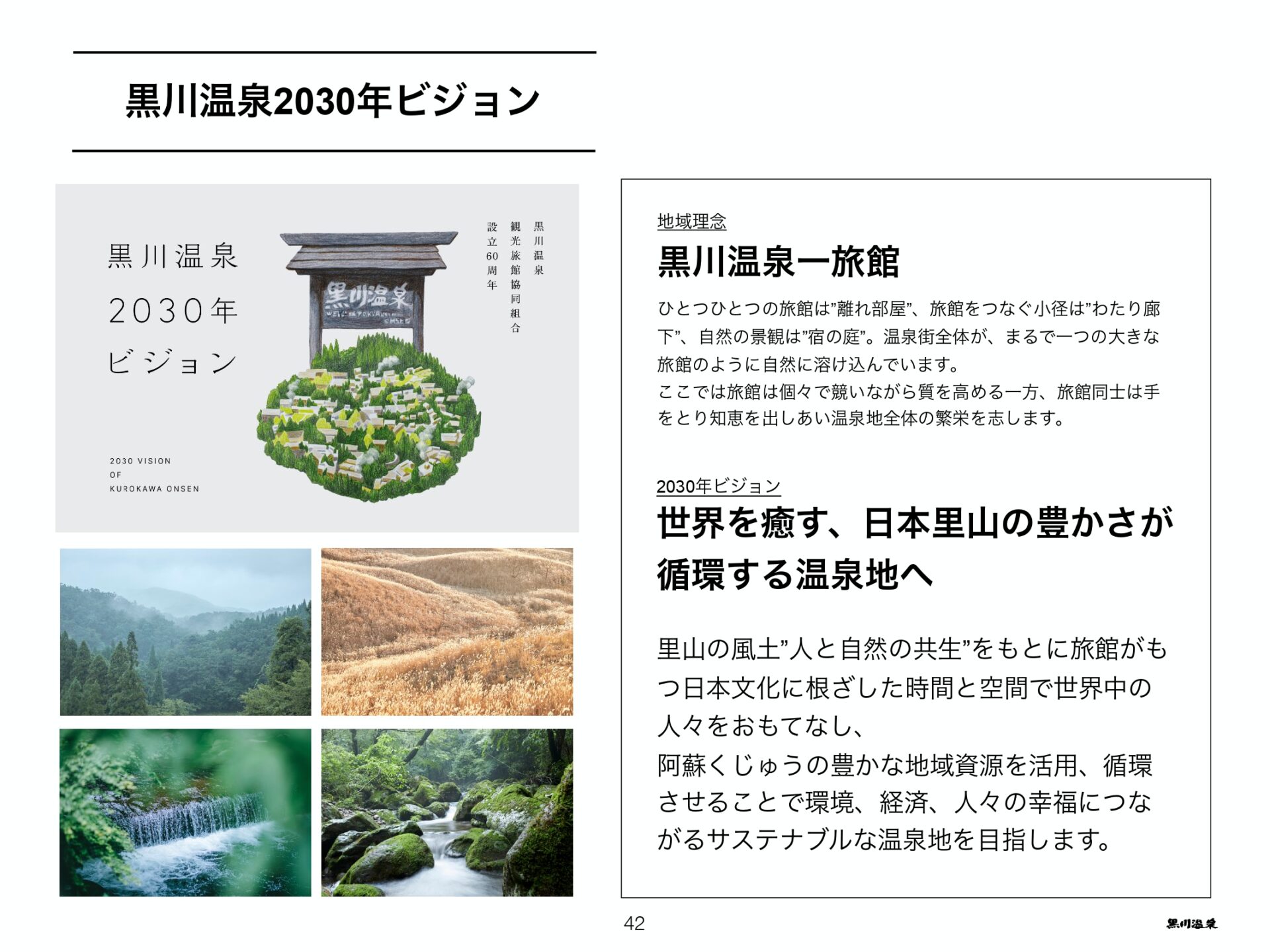 地域の経済と資源、2つの循環を意識した温泉地づくりを推進する「黒川温泉2030年ビジョン~世界を癒す、日本里山の豊かさが循環する温泉地へ~」を策定し発信したこと