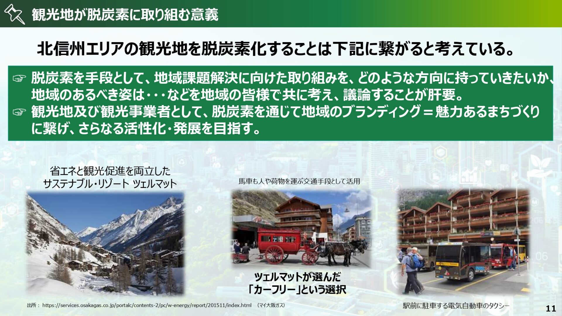 観光関連に起因する温室効果ガス排出量は全体の約8~11%、環境負荷の増大が問題視されていることや、