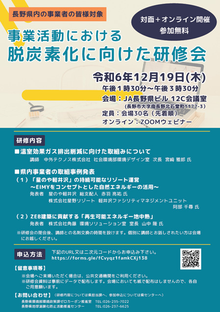主 催:長野県環境部環境政策課ゼロカーボン推進室