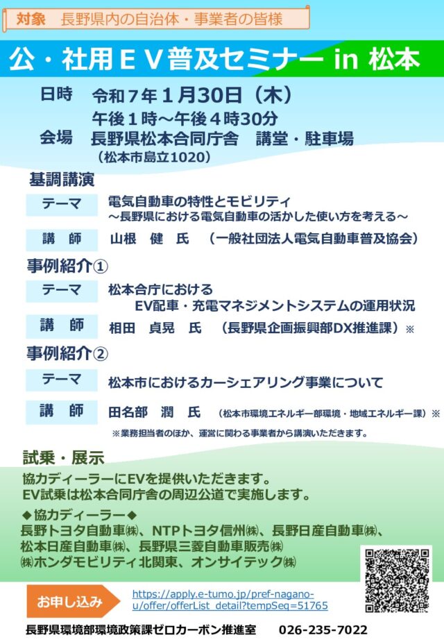 ゼロカーボン社会共創プラットフォーム「くらしふと信州」では、「補助金に依存しない地域内経済循環」をテーマに、環境省脱炭素まちづくりアドバイザーなどが地域新電力、PPA、EMSなどを中心として解説するセミナーを開催します。