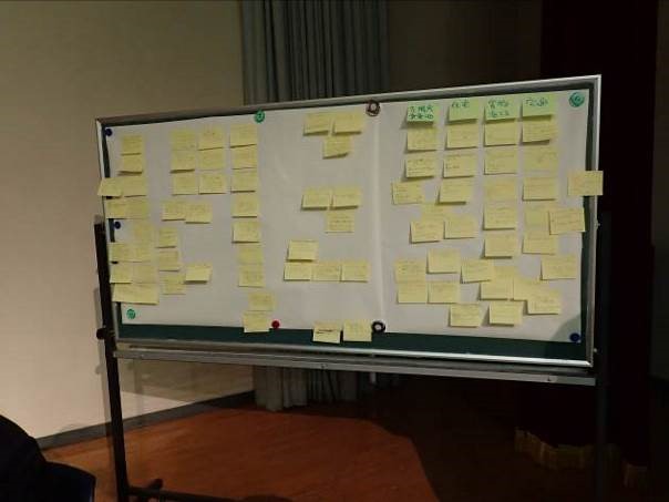 会場参加者にはあらかじめ座席にふせんを配布し、今行っている取組や登壇者への質問・応援などを記載していただき、パネルディスカッションで随時紹介するという、双方向型で進行しました。