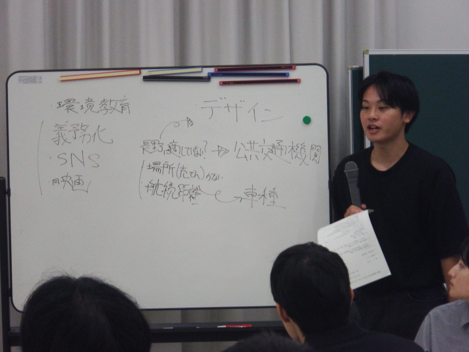 令和7年10月15日(水)、県のゼロカーボン戦略の見直しに向けた意見交換会「ゼロカーボンミーティングinUEDA」を開催しました。当日は、上田地域で学ぶ信州大学、長野大学、上田短期大学、県工科短期大学校の学生18名に参加していただきました。
