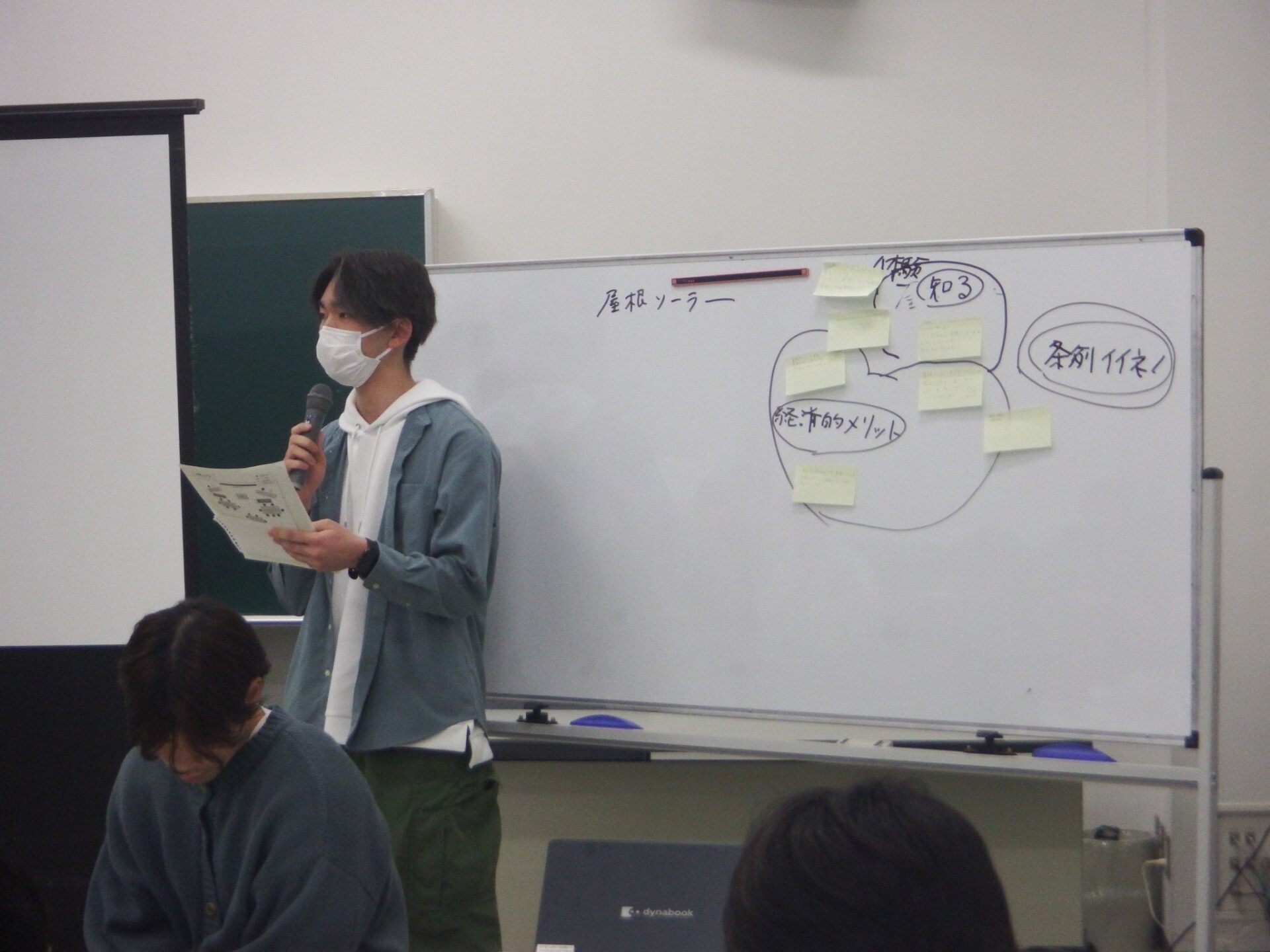 その後、参加者は3つのグループに分かれ、「すべての県民が気候変動を『自分ごと』とし、行動を変えるにはどうすればよいか」など4つのテーマについてグループ討議を行いました。