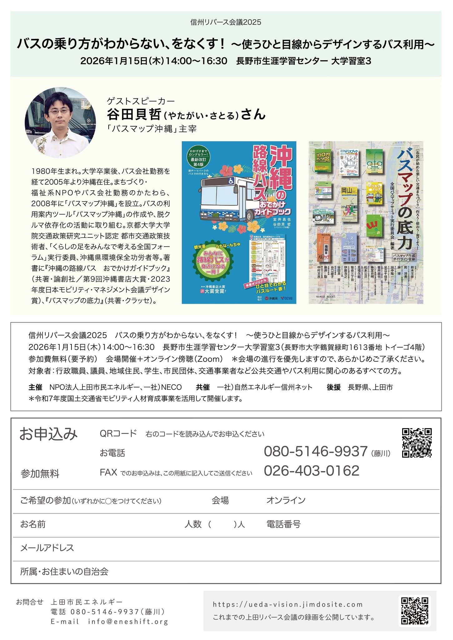 今回、沖縄で革新的な「バスマップ沖縄」をつくり上げた谷田貝さんが、はるばる信州へ来てくださいます。