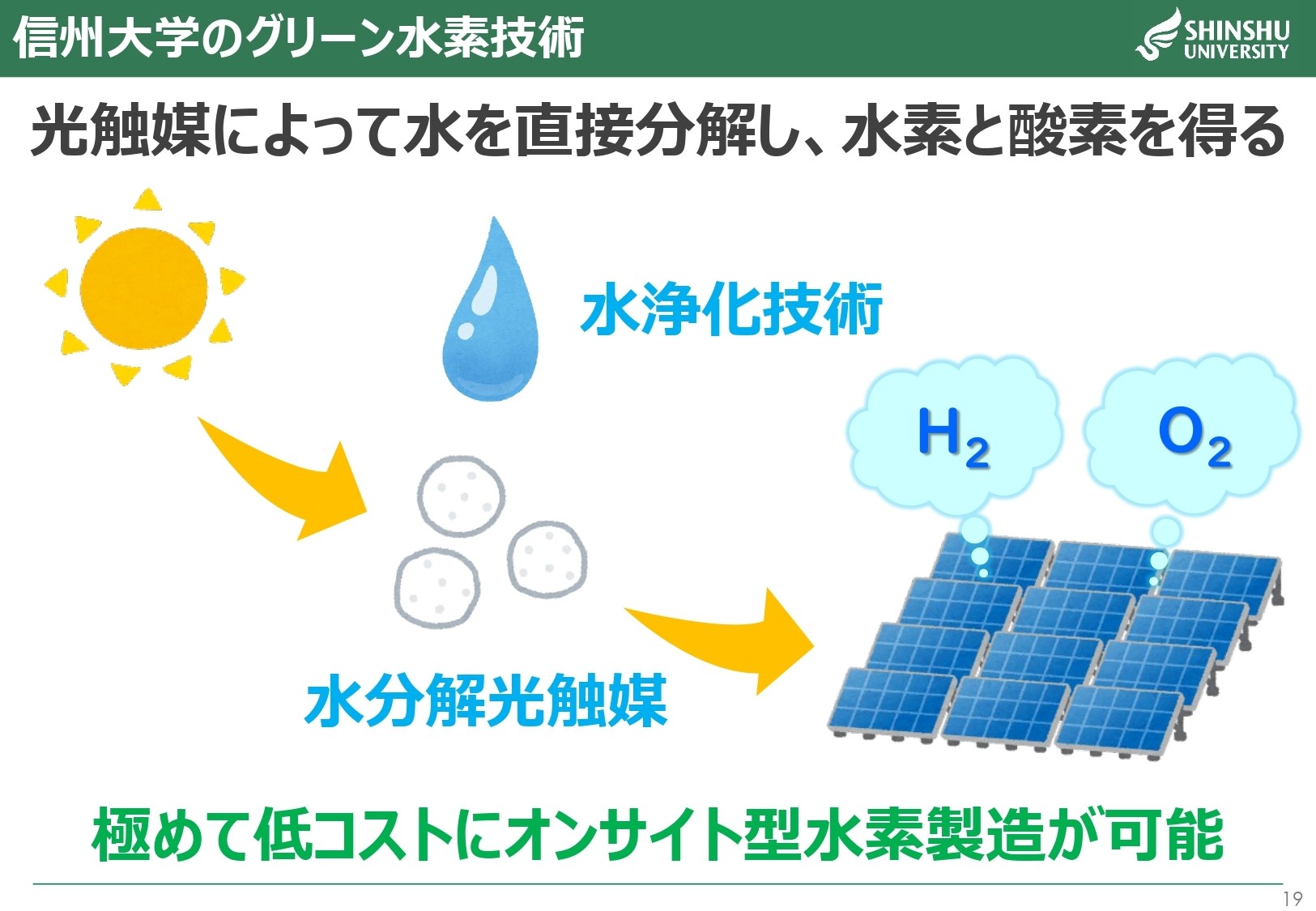そこで信州大学が取り組んでいるのが、光触媒による水素製造です。