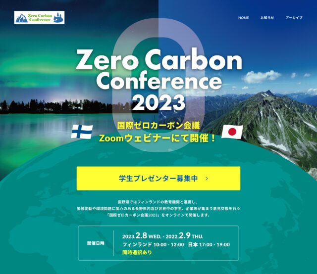 フィンランドの教育機関と連携し、環境問題に関心のある長野県内と世界中の学生、企業等が意見交換う会議です。